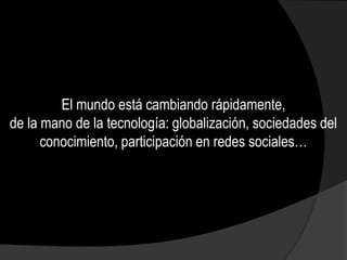 El documento discute los desafíos que enfrenta el sistema educativo ante los cambios tecnológicos y las nuevas habilidades requeridas por los estudiantes. Propone que una política de informática educativa debe tener un propósito claro como cerrar la brecha digital, mejorar la docencia, y expandir las oportunidades de aprendizaje. También analiza los componentes, lecciones aprendidas y modelos de evolución de una política efectiva de informática educativa.