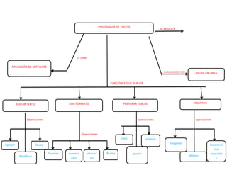 El documento describe las funciones básicas de un procesador de textos, incluyendo editar, dar formato y preparar tablas e insertar imágenes u objetos. Explica que es un procesador de textos y cómo puede ayudar en la vida cotidiana y escolar al permitir la creación y edición de documentos.