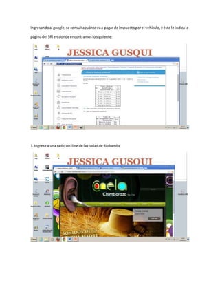 El documento proporciona una lista de 26 tareas relacionadas con el uso de herramientas de búsqueda en Internet como Google y metabuscadores. Las tareas incluyen consultar impuestos de vehículos, acceder a radios y periódicos en línea, participar en foros, enviar correos electrónicos con adjuntos, acceder páginas web por URL o URI, capturar imágenes, configurar el idioma de búsqueda de Google e investigar definiciones y archivos PDF.