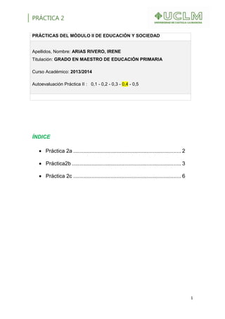 Este documento contiene tres prácticas realizadas por una estudiante de maestría sobre educación y sociedad. La primera práctica justifica el uso de recursos didácticos y tecnologías en la enseñanza y analiza sus aspectos positivos y negativos. La segunda práctica analiza las películas de Disney y los roles femeninos representados. La tercera práctica analiza anuncios de televisión para niños y los valores que transmiten.