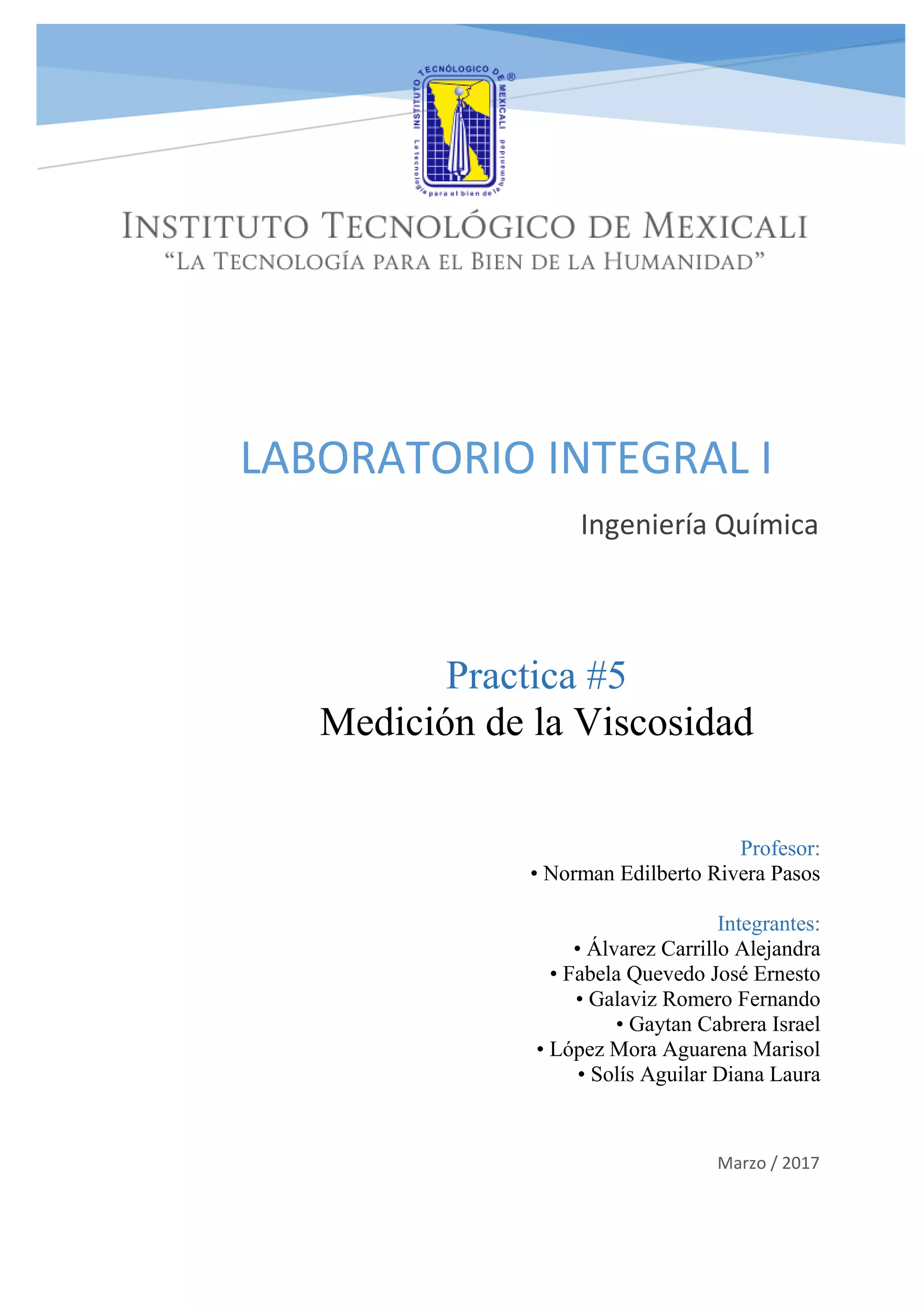 Este documento presenta los resultados de una práctica de laboratorio para medir la viscosidad de diferentes sustancias utilizando cuatro viscosímetros: Brookfield, Ostwald, Zahn y Stormer. Se midió la viscosidad del aceite, alcohol, glicerina y agua a varias temperaturas y se compararon los resultados entre los diferentes instrumentos.