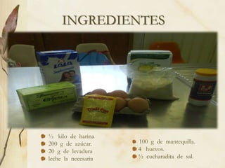 Este documento proporciona una receta para hacer pan de caja. Incluye instrucciones para preparar la levadura y mezclar los ingredientes como harina, huevos, azúcar, mantequilla y sal. Luego se agrega leche y levadura para formar una masa que se deja leudar hasta que doble su volumen antes de hornearlo en un molde engrasado a temperatura moderada hasta que esté dorado.