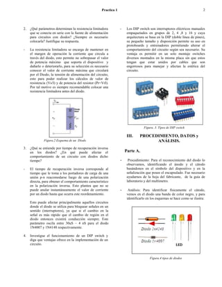 Este documento describe un estudio experimental de las características de diodos PN. Se analiza el comportamiento de los diodos 1N4148 y 1N4007 en polarización directa e inversa a través de mediciones de voltaje y corriente. Los resultados muestran que los diodos conducen en directa a partir de 0.4V y bloquean en inversa hasta voltajes mayores. El estudio proporciona una comprensión práctica del funcionamiento básico de los diodos.