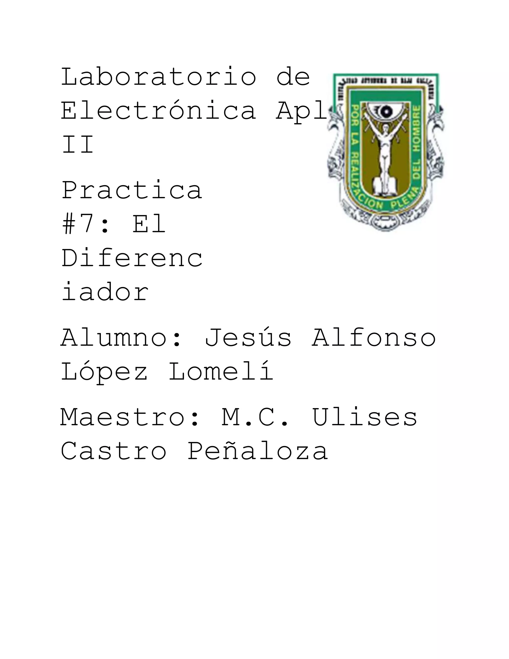 Este documento describe una práctica de laboratorio sobre el circuito diferenciador. El objetivo era comprobar el funcionamiento del circuito diferenciador aplicando una señal triangular de entrada y observando la señal cuadrada de salida. También se calculó la frecuencia de corte y se aplicó una señal de entrada por encima de esta para verificar que la señal de salida se aplanaba. La conclusión fue que el diferenciador con operacionales obtiene la derivada analizándola por secciones pero está limitado por la frecuencia de corte.