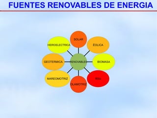 Las principales formas de energía son la mecánica, eléctrica, térmica, luminosa, nuclear y química. Las principales fuentes renovables de energía son la hidroeléctrica, solar, eólica, biomasa, residuos sólidos urbanos, ola mareomotriz y geotérmica.