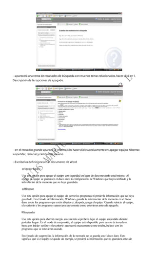 Este documento proporciona instrucciones sobre diferentes opciones de configuración y personalización en Windows, incluyendo cómo cambiar la resolución de pantalla, los temas, los fondos de escritorio, las fuentes y crear accesos directos. También explica cómo organizar los iconos del escritorio y eliminar archivos de la papelera de reciclaje.