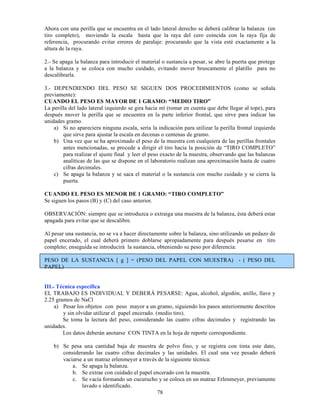 Este documento describe los procedimientos para realizar prácticas de laboratorio sobre el uso de una balanza analítica y la preparación de soluciones. Explica cómo usar correctamente una balanza analítica, incluida la selección de tiro completo o medio tiro dependiendo del peso a medir. También detalla los pasos para preparar soluciones de ácido clorhídrico y hidróxido de sodio a concentraciones normales específicas mediante el uso de reactivos y materiales de laboratorio.
