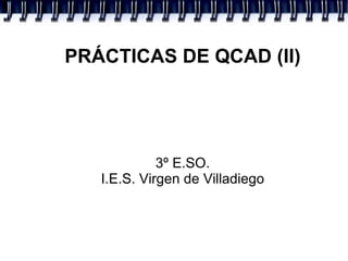 Este documento contiene una lista de prácticas de QCAD para estudiantes de 3er año de ESO en el IES Virgen de Villadiego. La lista incluye 52 prácticas numeradas de la 7 a la 51 agrupadas en bloques de 4 prácticas cada uno.