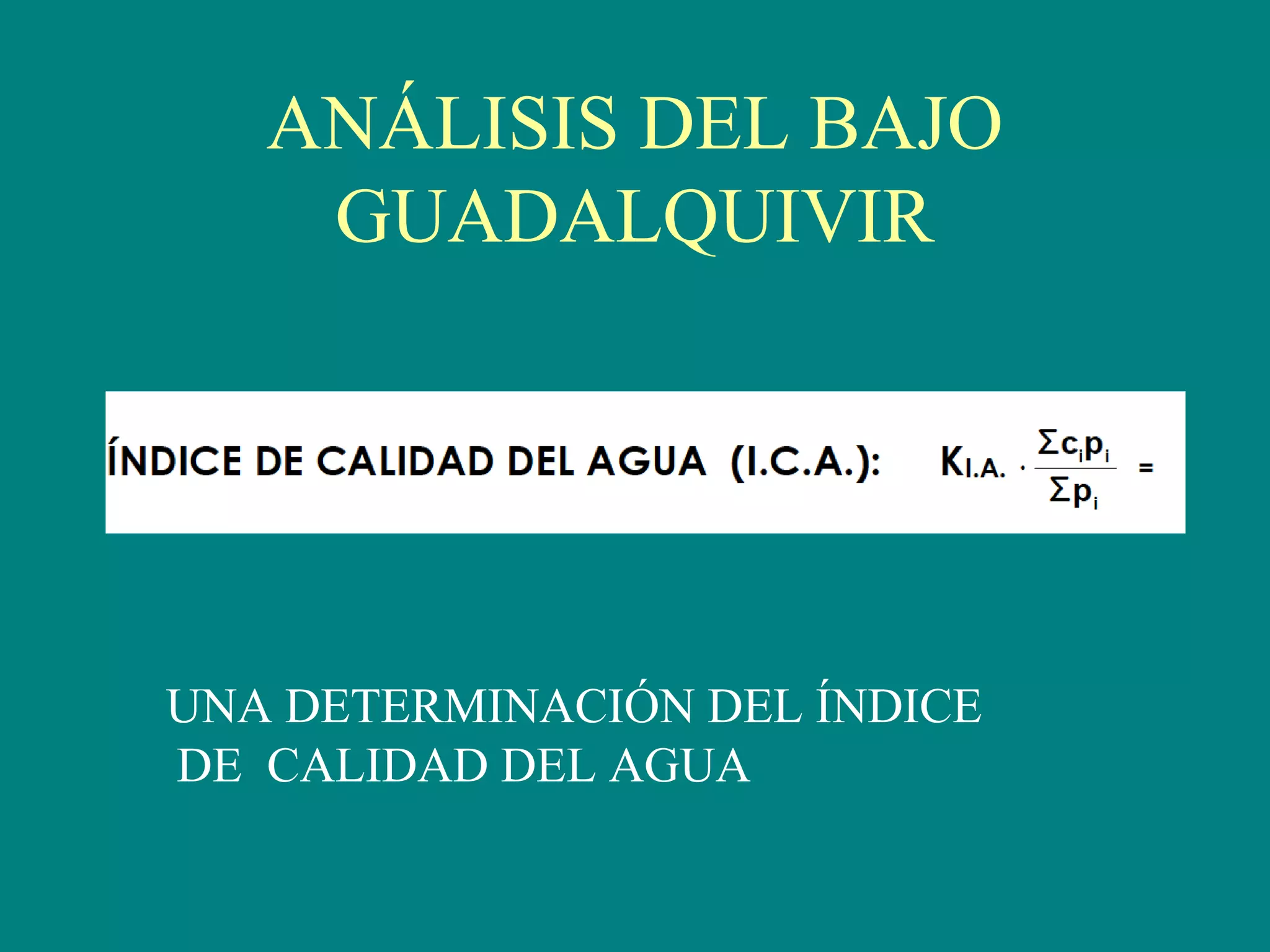 El documento presenta un análisis de la calidad del agua en el bajo Guadalquivir que incluye mediciones de la temperatura, profundidad, materia orgánica, turbidez, presencia de aceite y detergentes, densidad, pH, salinidad, oxigeno disuelto, dureza total y debida al calcio, y la presencia de compuestos como cobre, plomo, hierro, zinc, amonio, nitratos, nitritos, fosfatos y sulfatos. Explica los materiales, reactivos y procedimientos para realizar