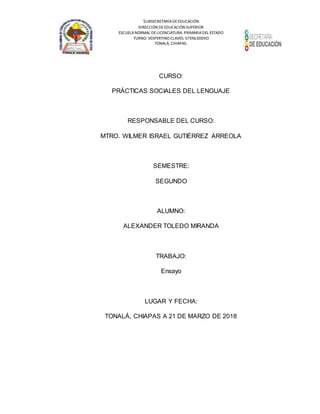 Este documento habla sobre la enseñanza del español en la educación básica. Explica que el docente debe identificar los estilos de aprendizaje y ritmos de aprendizaje de los estudiantes para adaptar la enseñanza de manera efectiva. También señala algunos retos actuales como la falta de innovación en los métodos de enseñanza y problemas de ortografía generalizados. El objetivo principal de enseñar español en primaria es desarrollar las habilidades de lectura, escritura, comprensión y h