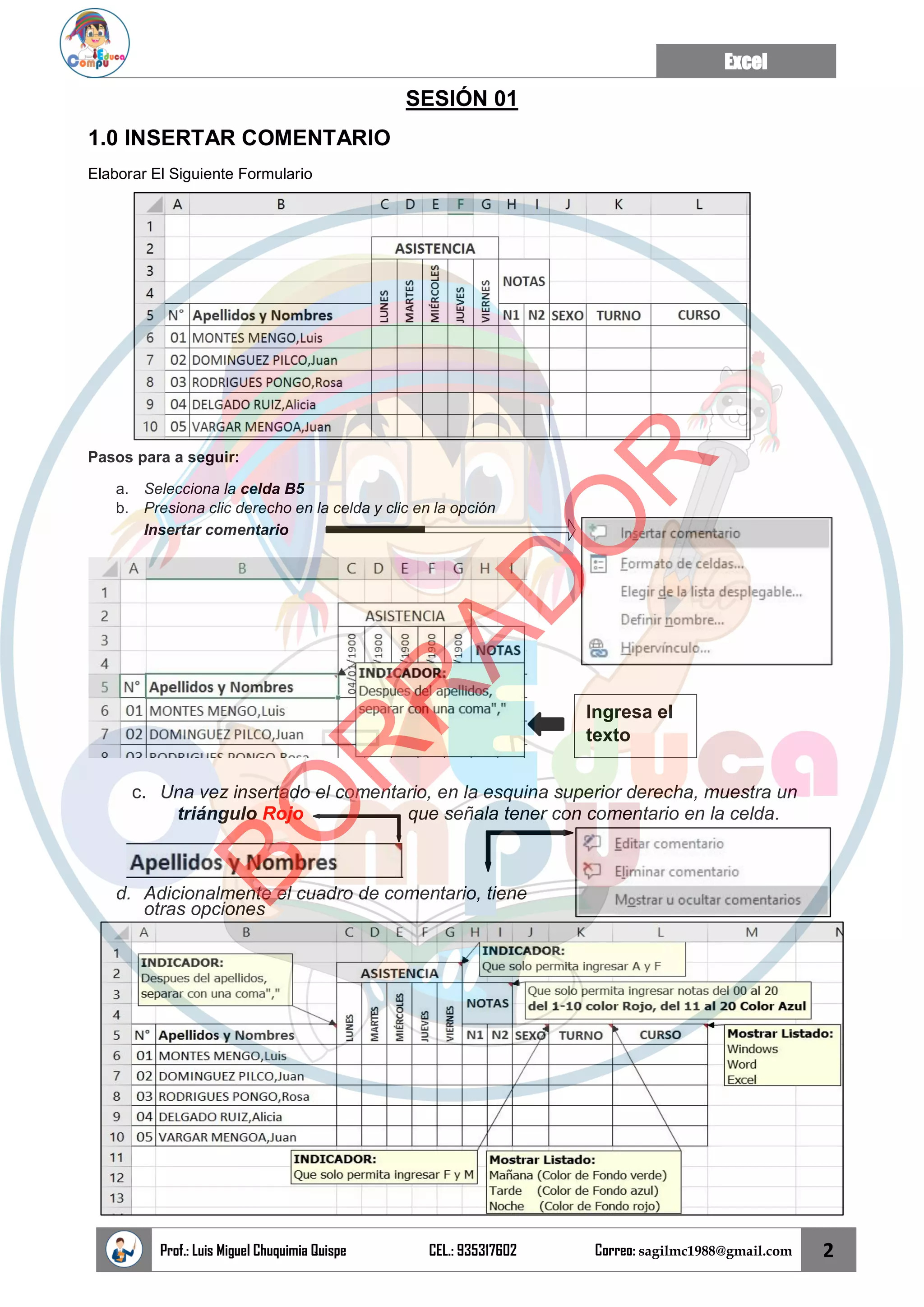 Este documento proporciona instrucciones y ejemplos para el uso de funciones avanzadas en Excel como validación de datos, formato condicional, fórmulas y función SI. Incluye tablas de ejemplo con indicaciones específicas para aplicar estas herramientas. También incluye secciones de autoevaluación para que el estudiante evalúe su comprensión y aplicación de los conceptos aprendidos.