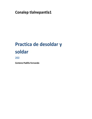 Este documento describe el proceso de soldadura y desoldadura en la reparación de circuitos electrónicos. Explica que la soldadura une metales mediante la fusión y solidificación de un tercer metal. Detalla las herramientas necesarias como el cautín y la soldadura de estaño-plomo, y los pasos para desoldar y volver a soldar las patas de un circuito.