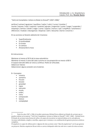 2) Aplicarán por lo menos 3 acciones de una lista elaborada por el escultor Richard Serra para modificar la forma de la maqueta.