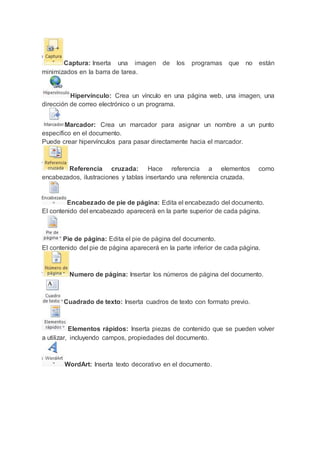 La pestaña Insertar de Microsoft Word ahora contiene grupos de herramientas de acceso rápido. Estos grupos incluyen "Páginas" para insertar portadas, páginas en blanco y saltos de página, "Ilustraciones" para insertar imágenes, gráficos y formas, y "Otros elementos" para insertar hipervínculos, marcadores, referencias cruzadas, encabezados, pies de página y números de página.