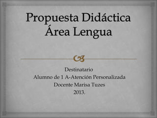 Este documento presenta el trabajo final de la alumna Marisa Tuzes para la clase 4. Incluye 8 tareas relacionadas con la lectura y comprensión del cuento "Horrible Melena". Las tareas abarcan desde la lectura del cuento, identificación de vocabulario y secuencia narrativa, hasta actividades de escritura como completar oraciones y dictado de palabras. El documento finaliza agradeciendo a colegas por su apoyo.