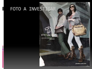 Este cartel publicitario de Prada promueve su línea de otoño a través de una pareja elegante en Milán. Usa colores como gris, café y negro para transmitir elegancia. Muestra a una mujer y hombre italianos típicos vistiendo ropa de Prada de manera elegante y sofisticada. El mensaje es que comprando ropa de Prada, uno puede verse tan elegante y tener el estilo de vida glamoroso de los modelos.