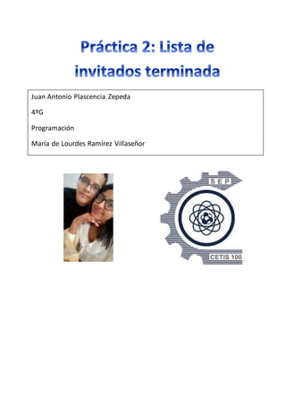 El documento describe un diseño de interfaz de usuario para una lista de invitados usando LinearLayout en XML. Contiene cuatro TextView con diferentes nombres de invitados que se muestran verticalmente uno debajo del otro y tienen el mismo tamaño de texto y color de fondo. El estudiante reflexiona que esta actividad le ayudó a conocer cómo usar LinearLayout para mejorar la estética de las aplicaciones y modificar el diseño deseado.