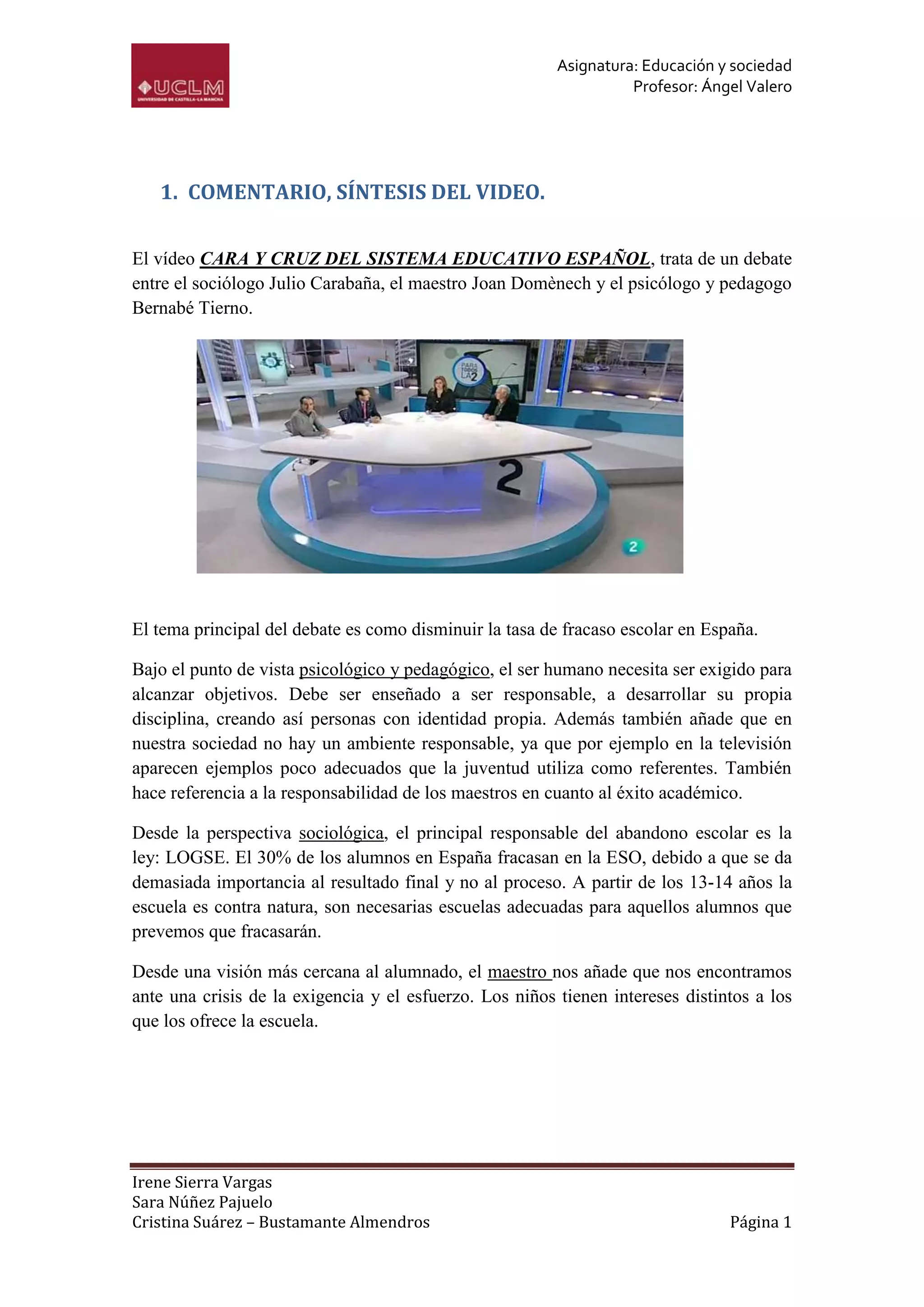 El documento analiza el fracaso escolar en España. Se discute el tema en un debate entre un sociólogo, maestro y psicólogo, donde expresan que el fracaso se debe a factores como la ley educativa LOGSE, falta de exigencia y motivación de los estudiantes. También se analizan datos de la OCDE que muestran que España tiene altas tasas de fracaso y abandono escolar temprano en comparación con el promedio de la OCDE.