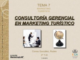 Este documento resume una conferencia sobre la consultoría gerencial en marketing turístico. La conferencia explicó que la consultoría de proceso ayuda a las empresas a identificar sus propios problemas y generar soluciones trabajando en conjunto con consultores. También describió cómo el Centro de Estudios de Técnicas de Dirección de la Universidad de La Habana realiza consultorías utilizando equipos mixtos de consultores internos y externos siguiendo una metodología a medida.