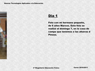 El documento presenta una colección de fotos de la vida cotidiana del autor durante una semana, incluyendo fotos con su hermano, leyendo noticias y periódicos deportivos, comiendo con compañeros de clase, entrenando equipos de baloncesto, limpiando platos, viajando a la universidad, y entrenando un equipo de benjamines. El autor compartió las fotos en su cuenta de Flickr bajo una licencia de atribución que permite el uso comercial de las imágenes siempre que se mencione su nombre.