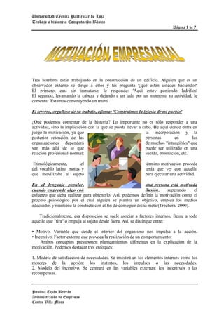 Los tres hombres están construyendo un edificio. El primero dice que está poniendo ladrillos, el segundo que están construyendo un muro, y el tercero que están construyendo la iglesia de su pueblo, mostrando diferentes niveles de implicación y motivación con la tarea.