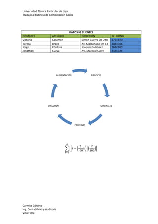 El documento discute la importancia de una dieta variada y equilibrada para la salud. Señala que una persona consume unas 100 toneladas de comida a lo largo de su vida y que la calidad y variedad de los alimentos influyen en su salud. Recomienda aumentar el consumo de alimentos ricos en carbohidratos, frutas y verduras, y reducir el azúcar y la grasa, especialmente de origen animal. También destaca la importancia de beber agua de forma equilibrada y que las dietas vegetarianas pueden ser saludables si