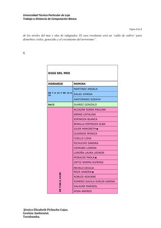 El documento discute cómo el aumento de los gases de efecto invernadero debido al uso de combustibles fósiles y procesos industriales está causando el calentamiento global, lo que podría tener graves consecuencias ambientales, económicas y de seguridad como sequías, hambrunas, refugiados y conflictos. Muchas organizaciones están preocupadas por los posibles efectos catastróficos del cambio climático.
