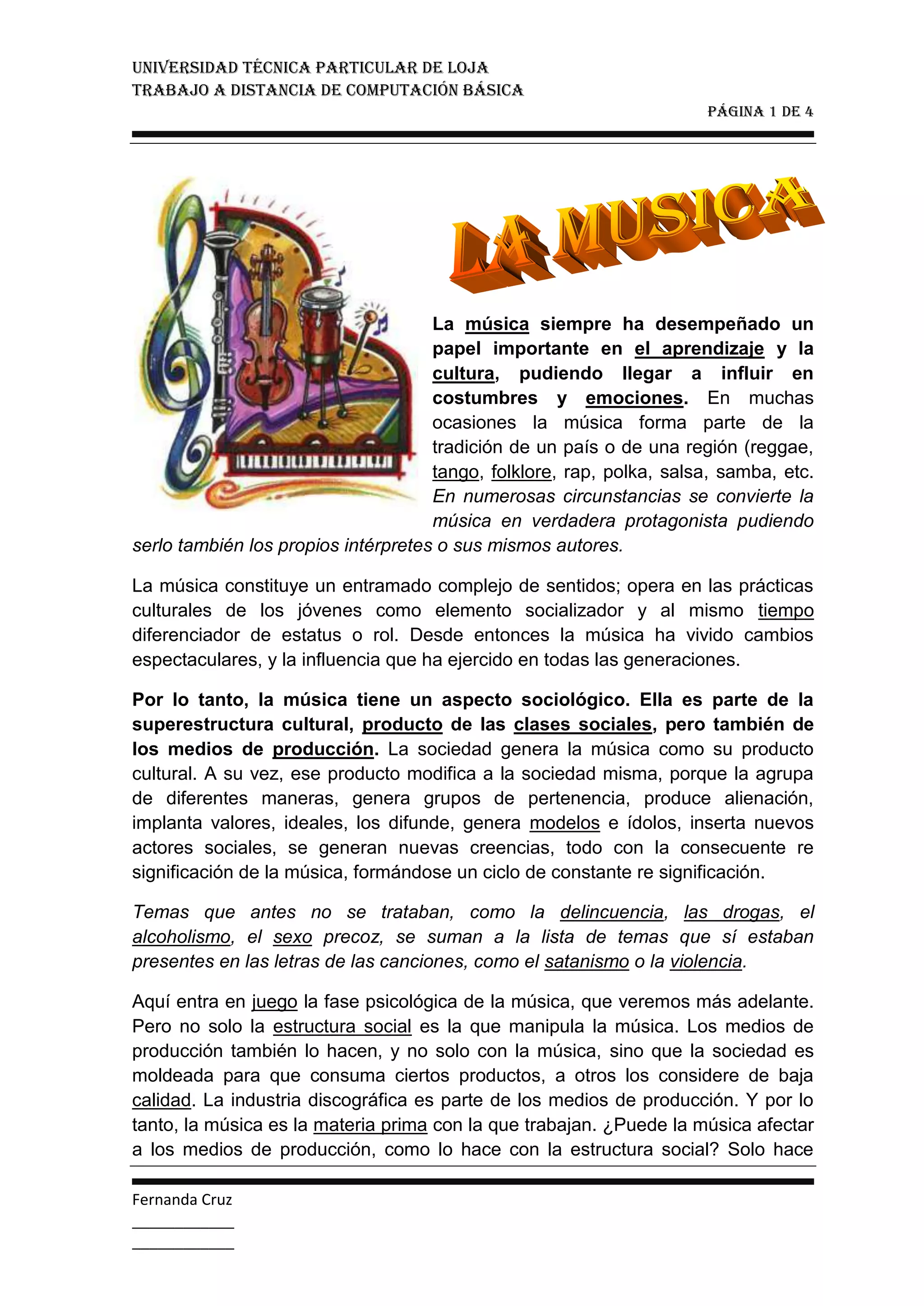 La música ha desempeñado un papel importante en la cultura y la sociedad, influyendo en costumbres y emociones. La música forma parte integral de las tradiciones de muchos países y regiones. La música también tiene un impacto sociológico al agrupar a la gente de diferentes maneras y transmitir valores e ideales. La industria de la música manipula la sociedad para que consuma ciertos productos musicales.