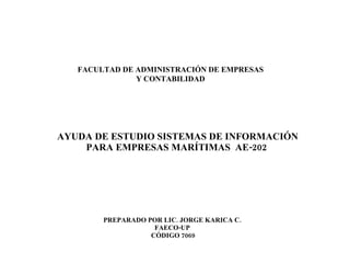 El documento presenta un resumen de los conceptos básicos de sistemas de información para empresas marítimas. Explica temas como procesamiento de datos, historia de la informática, hardware, software, lenguajes de programación, bases de datos, comercio electrónico y tecnologías como intranets y localización geográfica. El objetivo es proveer una introducción general a la informática y sus aplicaciones para la toma de decisiones en empresas del sector marítimo.