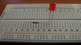 Este documento describe una práctica de laboratorio sobre LEDs e incluye instrucciones para construir un circuito simple con un LED y una resistencia. Explica que un LED necesita una corriente eléctrica cuidadosamente controlada para funcionar correctamente y no dañarse, y que colocar una resistencia en serie con el LED sirve para limitar la corriente que lo atraviesa. Proporciona detalles sobre los componentes necesarios y los pasos para construir el circuito.