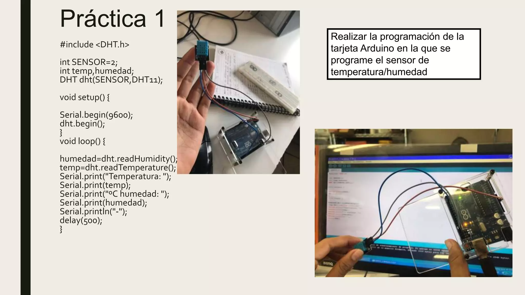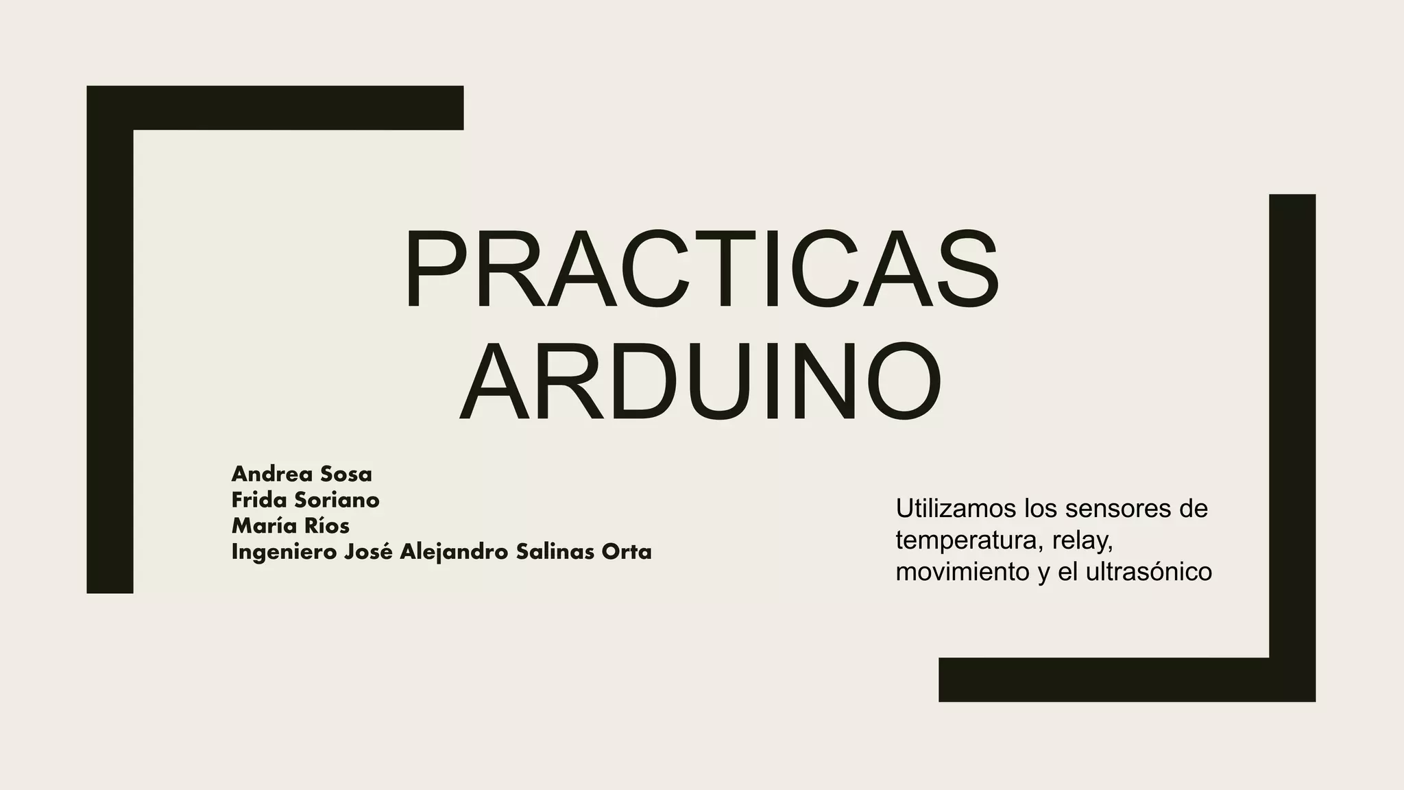 El documento presenta diversas prácticas de programación con Arduino utilizando sensores de temperatura, movimiento y ultrasónico. Incluye ejemplos de código que muestran cómo leer datos de estos sensores, controlar LEDs y un relay basado en la temperatura y la detección de movimiento. También se mencionan esquemas eléctricos relacionados con los sensores utilizados en las prácticas.