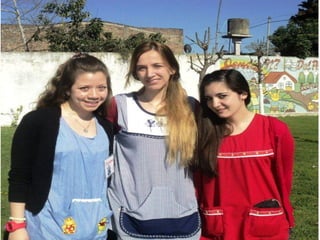 Este documento resume las experiencias de un grupo de estudiantes de magisterio mientras realizaban prácticas docentes en un jardín de infantes. Compartieron actividades realizadas con los niños como cuentos, pinturas y juegos. También incluyó entrevistas a maestras sobre su vocación y la función de la escuela, así como reflexiones personales sobre sus propias experiencias en las prácticas.