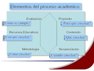Este documento presenta un método para describir las prácticas y modelos educativos mediante preguntas. Discute cómo las prácticas educativas han cambiado a través del tiempo y contextos. También presenta elementos que deben considerarse al diseñar un sistema curricular como propósitos, contenidos, métodos, secuencia y evaluación. Finalmente, ofrece ejemplos de cómo aplicar este método para describir modelos pedagógicos específicos.
