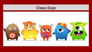 Este documento describe Class Dojo, una aplicación que ayuda a maestros, padres y estudiantes a compartir momentos positivos del aula de manera segura. Class Dojo permite compartir fotos y videos, crear una línea de tiempo para que los padres participen, y fomentar habilidades como el trabajo en equipo. Los estudiantes y maestros disfrutan la aplicación, y los padres pueden involucrarse a través de mensajes y anuncios con fotos y videos. El documento incluye enlaces de tutoriales sobre cómo usar Class Dojo