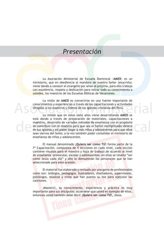 Jesús creció como cualquier niño, aprendiendo y obedeciendo a sus padres. A medida que crecía, Jesús se volvió sabio y amable, sanando a los enfermos y enseñando sobre el amor de Dios. El manual presenta cinco lecciones para enseñar a los niños sobre el ejemplo de Jesús y cómo pueden crecer para ser como Él.