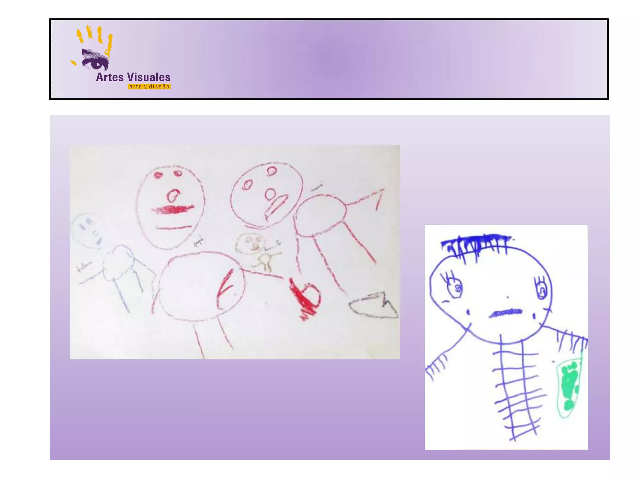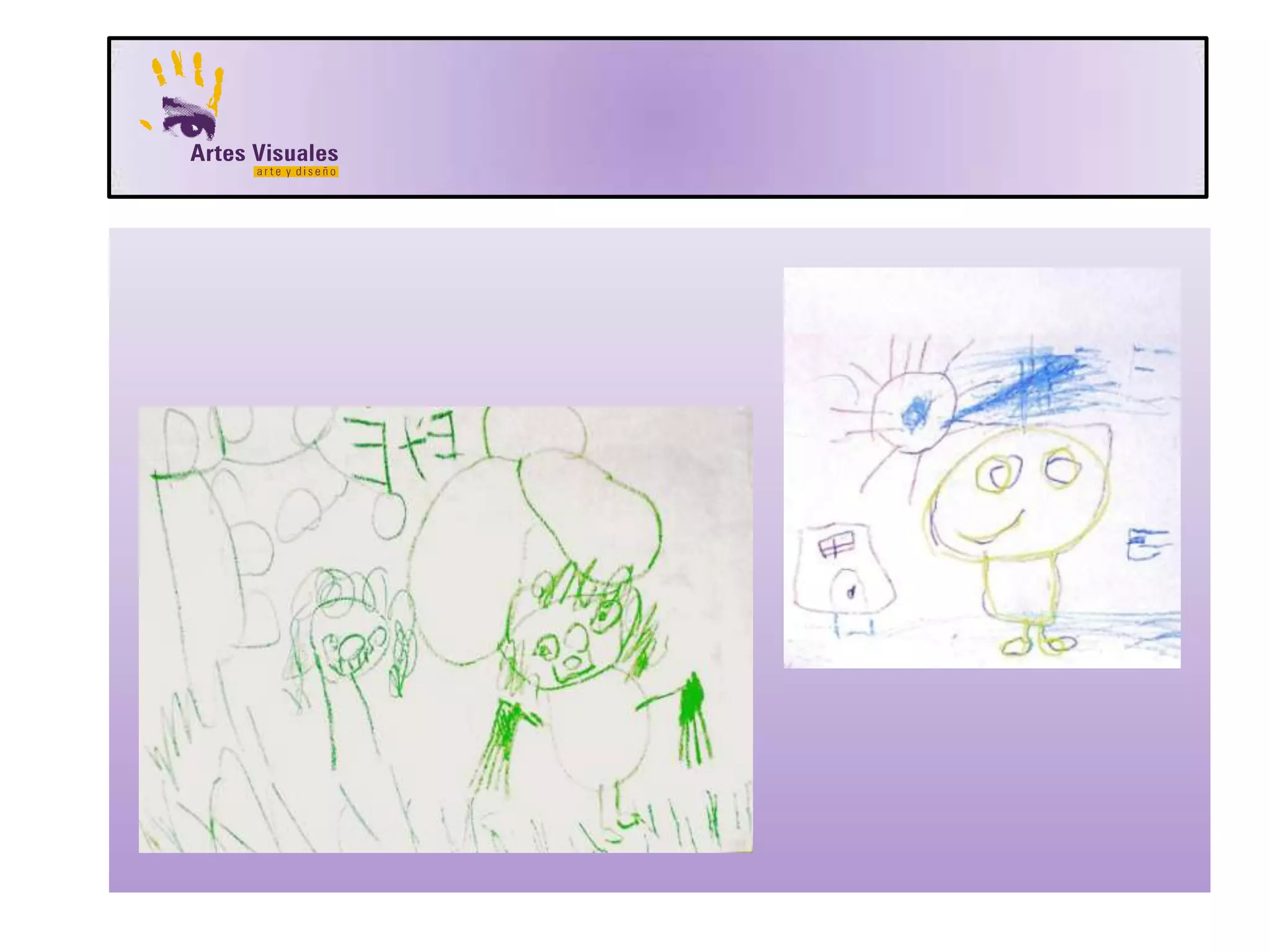 Este documento describe las características de los primeros intentos de representación en niños pequeños. Establecen relaciones con el mundo que los rodea a través de dibujos cuyas formas no tienen significados individuales sino como conjunto. Exploran conceptos como la figura humana, el espacio y el color de manera subjetiva basada en su conocimiento y experiencias.