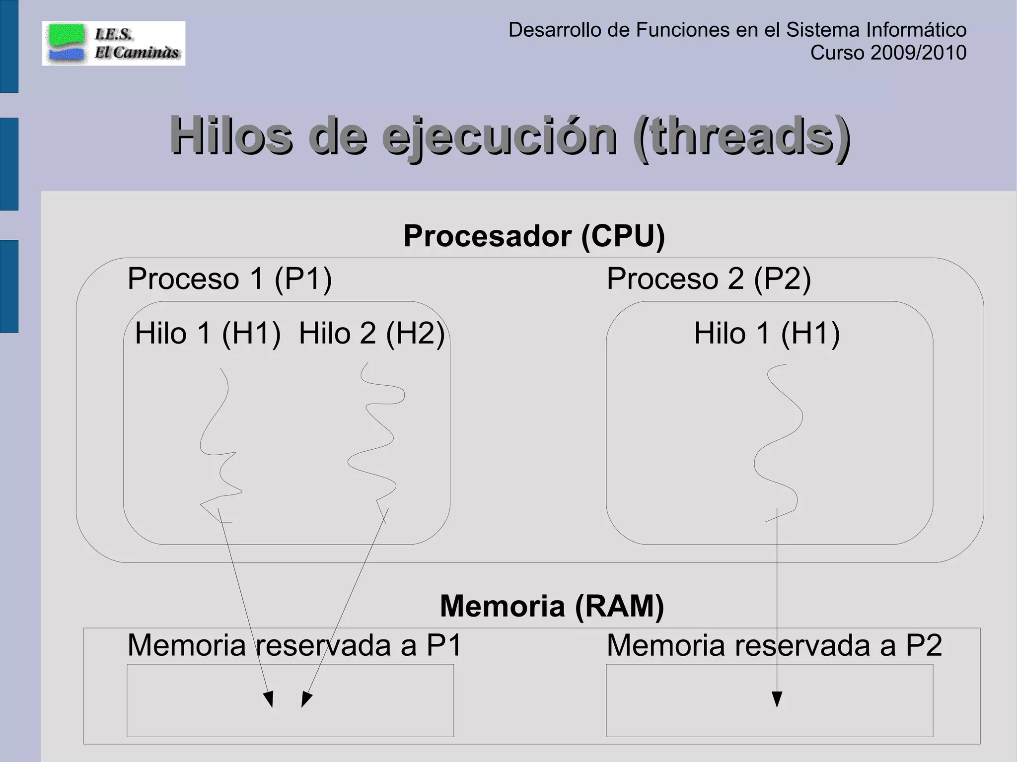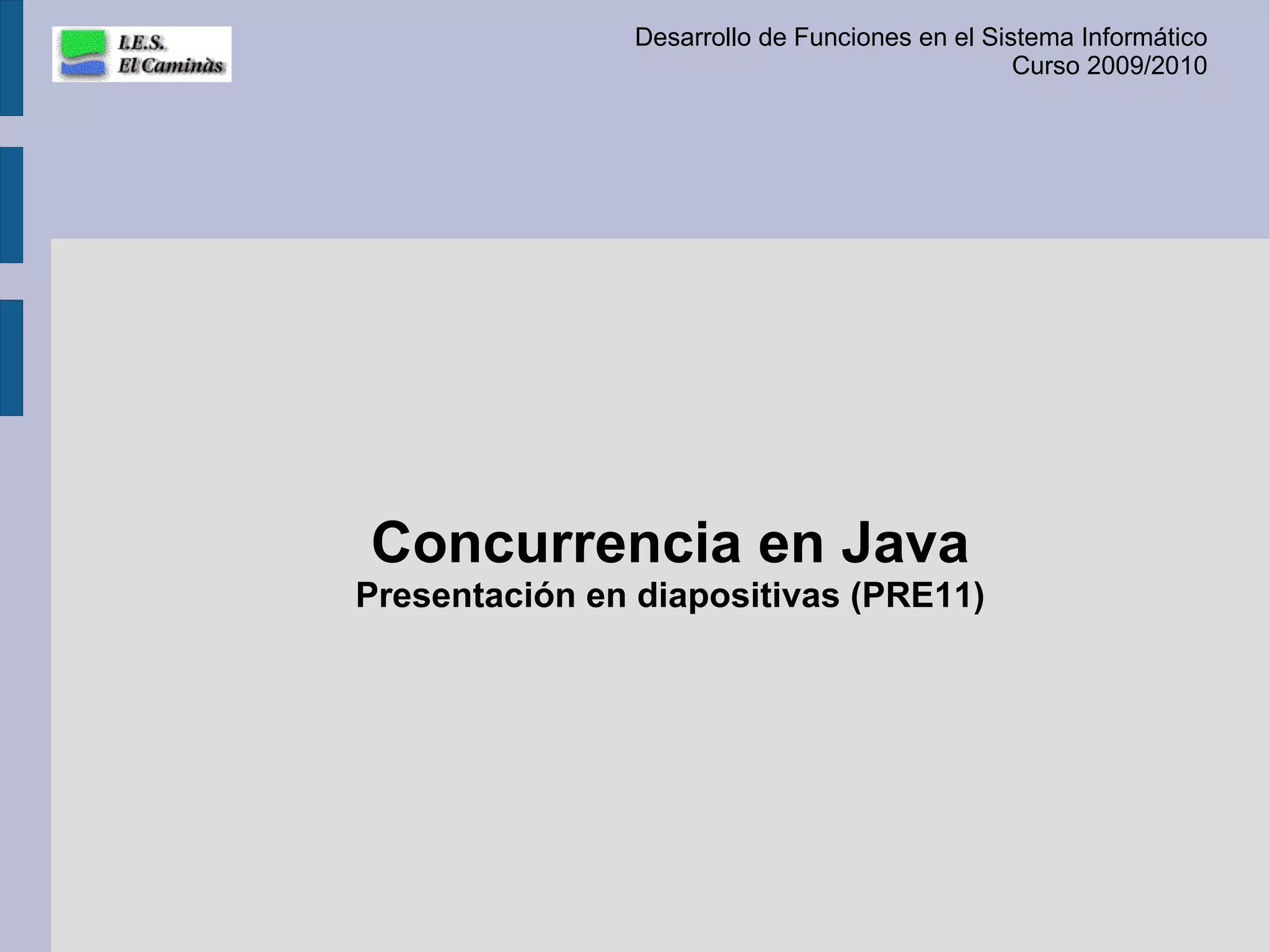 Este documento describe la concurrencia en Java, incluyendo la creación de hilos de ejecución mediante la extensión de la clase Thread y la sobrecarga del método run(), así como el ciclo de vida de los hilos que pasan por estados como nuevo, en ejecución, preparado y bloqueado.