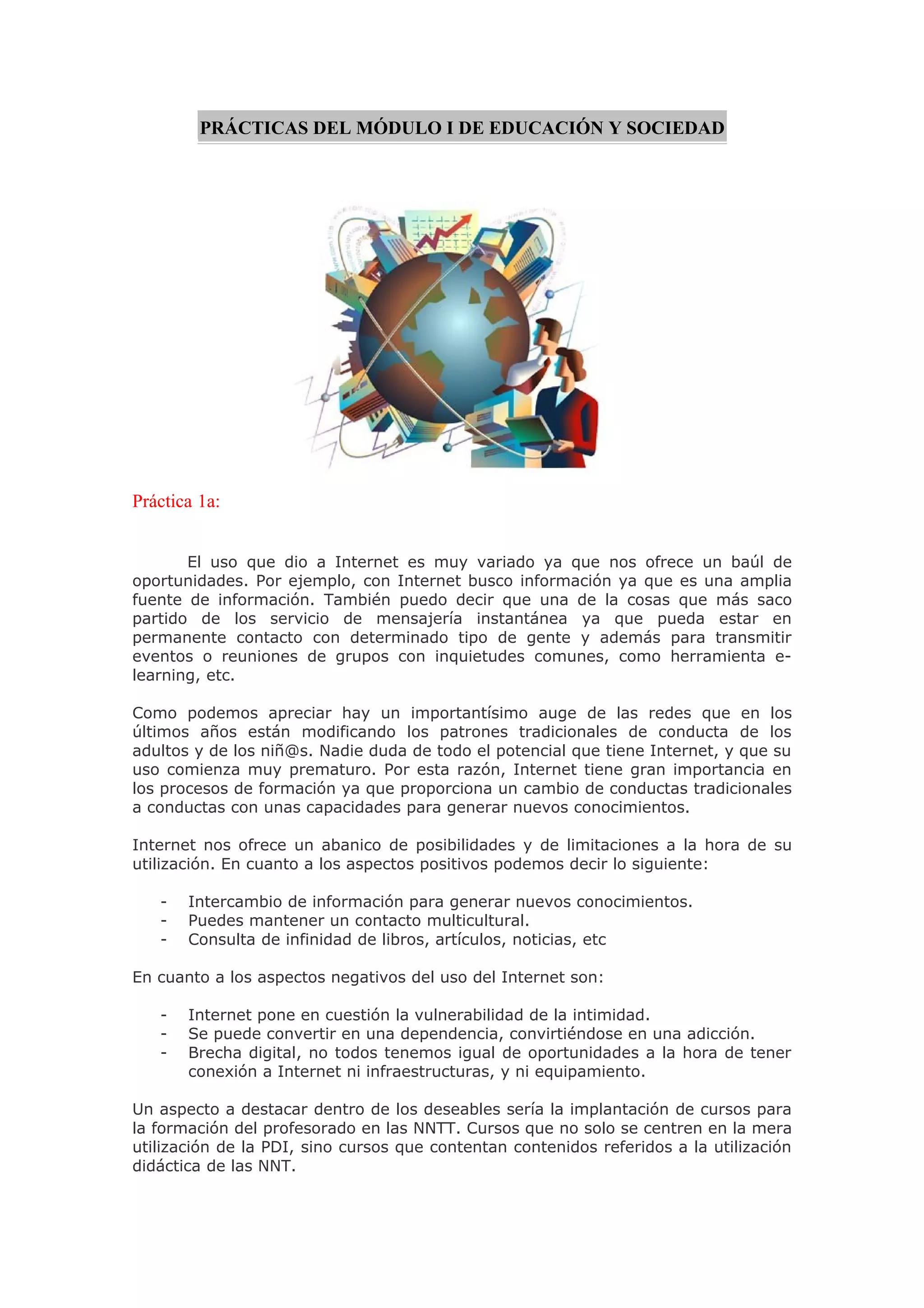 Este documento presenta información sobre el uso de Internet y las nuevas tecnologías en la educación. Explica que Internet ofrece muchas oportunidades como fuente de información y para comunicarse. También destaca los aspectos positivos como el intercambio de conocimientos e información, y los negativos como la vulnerabilidad de la privacidad y la posible adicción. Finalmente, propone la formación del profesorado en el uso didáctico de las nuevas tecnologías.