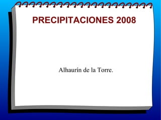Las precipitaciones en Alhaurín de la Torre en 2008 fueron menores que en años anteriores. El documento proporciona datos sobre las cantidades de precipitaciones caídas mes a mes en 2008 y una comparación con los totales anuales de precipitación desde 2000 a 2008.