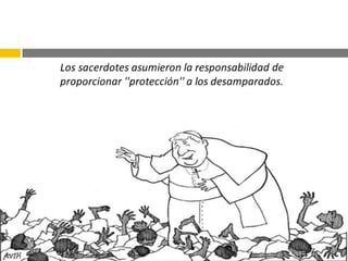 El documento describe la historia de las obras de caridad en el Viejo Mundo y en Inglaterra. Las primeras obras de caridad fueron proporcionadas por sacerdotes que cuidaban de los desamparados, viudas, huérfanos y enfermos. En el siglo XVII, Vicente de Paul mejoró las obras de caridad de la Iglesia Católica para prisioneros, huérfanos, enfermos y hambrientos. En la Inglaterra medieval, la Iglesia fue la principal institución caritativa apoyada por