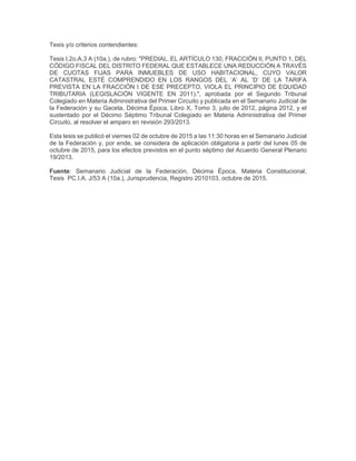El artículo 130, fracción ii, punto 1, del código fiscal del distrito federal, que establece una reducción en el cálculo del impuesto predial, es inconstitucional por violar el principio de equidad tributaria. Dicha reducción, justificada por vulnerabilidad en ciertas zonas y los ingresos per cápita de los contribuyentes, no está respaldada conforme a las condiciones reales de esos grupos. Como resultado, se determina que el tributo pierde su función recaudatoria al ofrecer beneficios fiscales sin un fundamento adecuado.