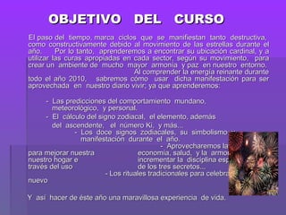 El curso 'Predicciones y Curaciones 2011' se centra en el impacto del tiempo y los ciclos estelares en la vida cotidiana, proporcionando herramientas para mejorar la armonía y paz en el entorno mediante el uso de curas y rituales específicos. La conferencista Patricia Garza González, experta en distintas ramas de la astrología y terapias alternativas, guiará a los participantes en la comprensión de las energías reinantes y su aplicación práctica. El curso se llevará a cabo el 11 y 12 de diciembre de 2010 en Monterrey, con un total de 12 horas de instrucción.
