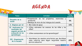 El resumen analiza los resultados de la segunda evaluación de aprendizaje de los estudiantes en el nivel preescolar e identifica a los estudiantes que necesitan más apoyo. Luego, define acciones para mejorar la asistencia y participación de los estudiantes y avanzar en los aprendizajes esperados, incluyendo brindar apoyo adicional a los estudiantes que lo requieren. Finalmente, se discuten formas de comunicar los resultados a los padres y dar seguimiento al progreso en relación con las metas del plan escolar.