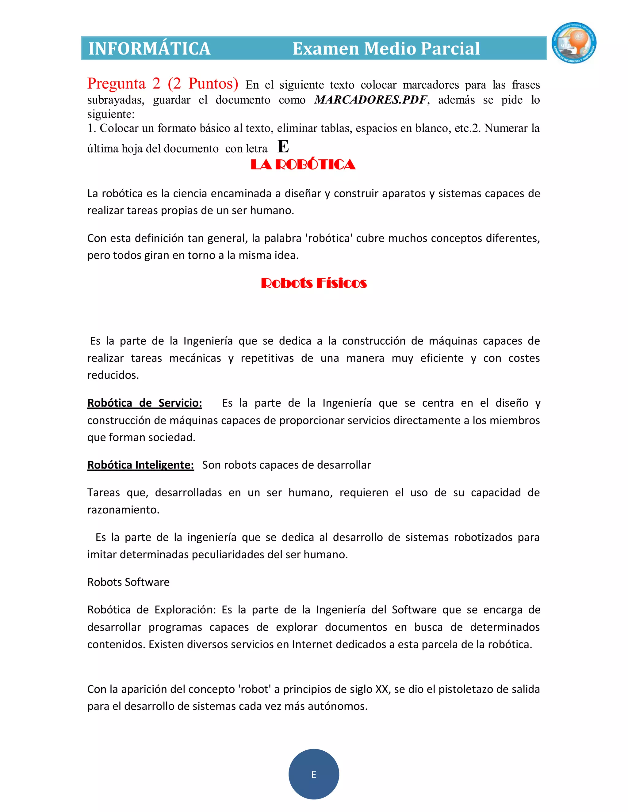 Este documento habla sobre diferentes tipos de robótica. Define la robótica como la ciencia dedicada a diseñar y construir aparatos que pueden realizar tareas humanas. Luego describe robots físicos para tareas mecánicas y repetitivas, robótica de servicio para proveer servicios a la sociedad, y robótica inteligente para tareas que requieren razonamiento humano. También menciona robótica de software y de exploración.