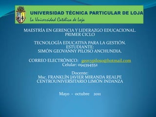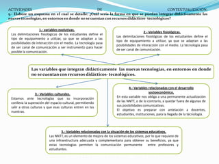 El documento describe estrategias para integrar recursos tecnológicos en entornos educativos sin acceso a dichos recursos. Propone formar una comisión de padres para gestionar la adquisición de equipos, capacitar docentes en tecnología e informar a la comunidad sobre su importancia. También recomienda asegurar infraestructura adecuada, mantenimiento de equipos y contar con el apoyo de la comunidad educativa.