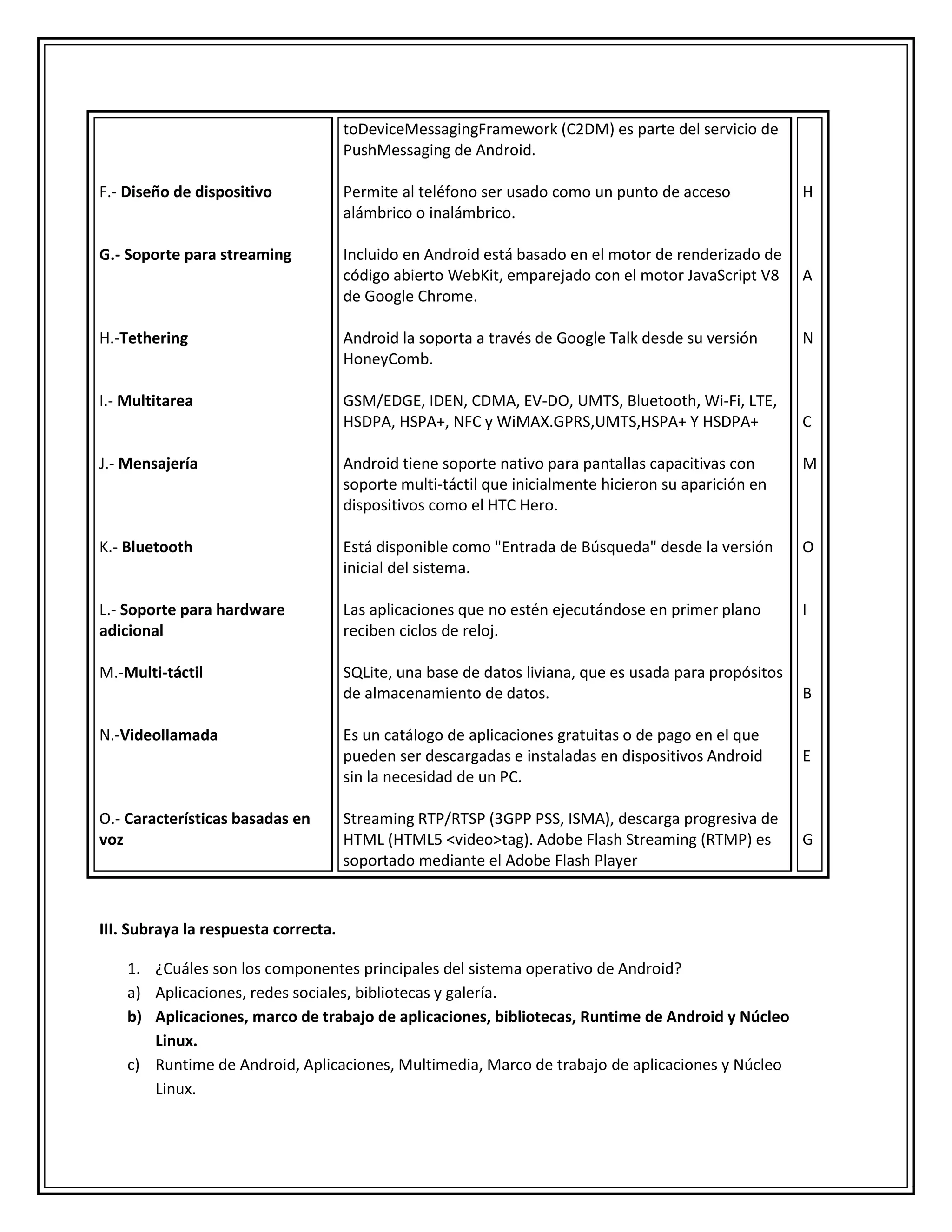 El documento proporciona información sobre Android, incluyendo que es un sistema operativo basado en Linux para dispositivos móviles, que se lanzó en 2008, y actualmente existen 11 versiones. También cubre conceptos clave como el soporte multimedia, almacenamiento, conectividad y más.