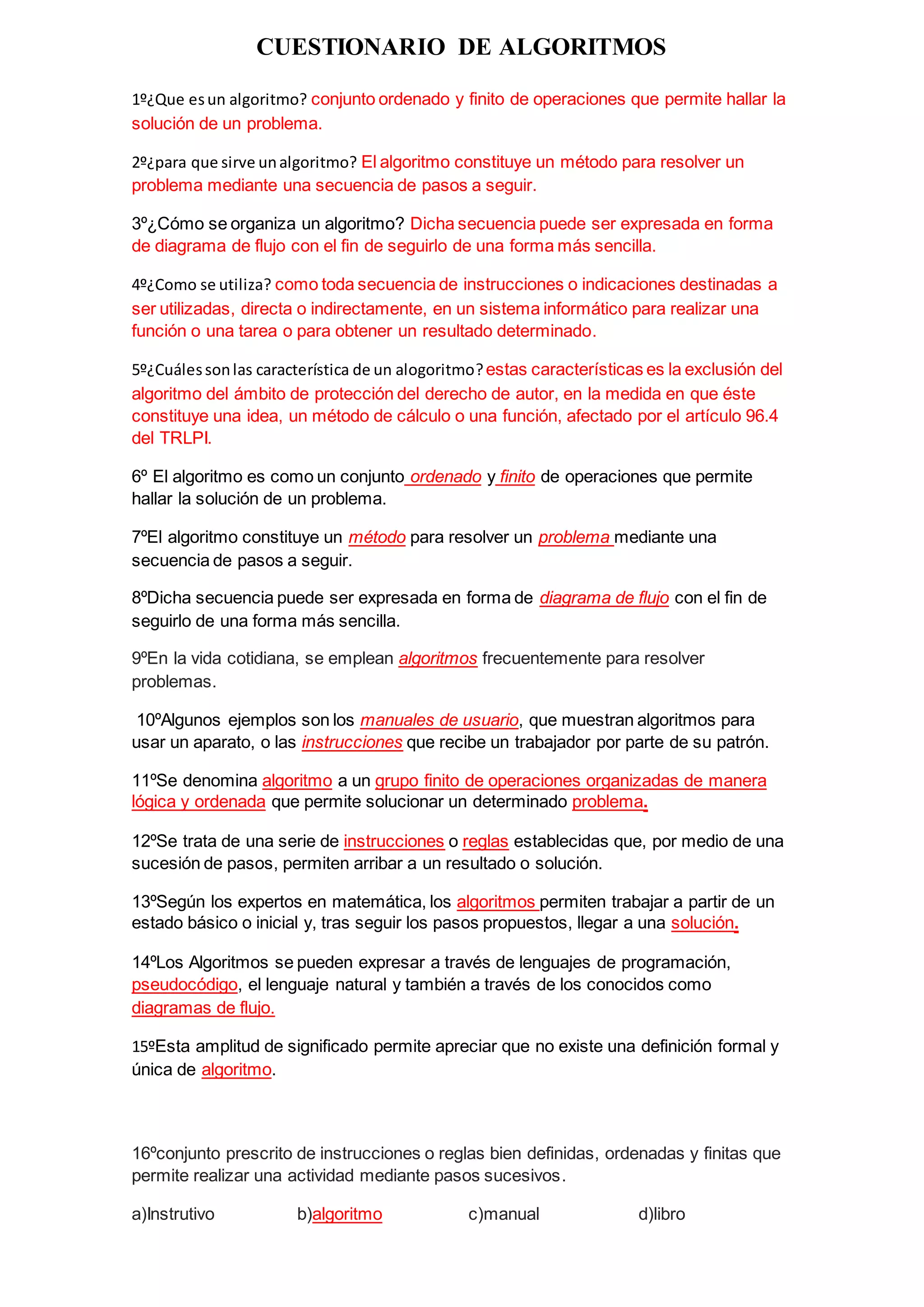 Un algoritmo es un conjunto ordenado y finito de operaciones que permite hallar la solución de un problema. Sirve como un método para resolver un problema mediante una secuencia de pasos. Esta secuencia puede expresarse como un diagrama de flujo para seguirlo de forma más sencilla.