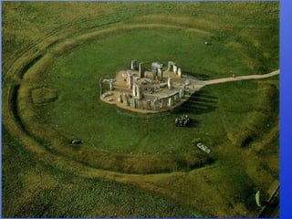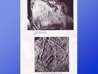 Este documento resume la prehistoria desde el Paleolítico hasta la Edad del Bronce. En el Paleolítico Superior entre 50.000-8.000 a.C. surgió el arte rupestre con pinturas y grabados de animales en cuevas. En el Neolítico, entre 8.000-3.500 a.C., el arte se hizo más abstracto y representó escenas de caza, recolección y grupos sociales. La arquitectura megalítica como dólmenes y menhires se desarrolló en la Edad del Cobre y Bron
