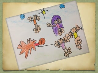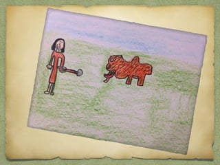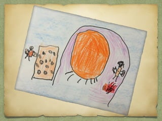 Los niños aprendieron que los hombres prehistóricos cazaban mamuts y otros animales con lanzas hechas de madera y piedra, vivían en cuevas para protegerse del clima, y pintaban en las paredes de las cuevas con pigmentos naturales. Las mujeres y los niños recolectaban frutos mientras los hombres cazaban. Con el tiempo, los humanos prehistóricos desarrollaron habilidades como cocinar la carne, hacer ropa y adornos, y cultivar plantas.