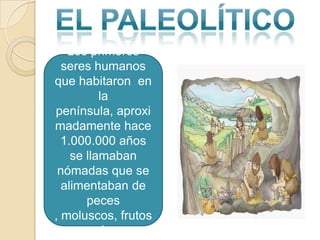 Los primeros seres humanos llegaron a la península hace 1 millón de años y eran nómadas que se alimentaban de pescado, moluscos y frutos. Hace unos 7,000 años, los seres humanos empezaron a cultivar plantas y domesticar animales, estableciéndose en los primeros poblados sedentarios. Hace aproximadamente 6,000 años, aprendieron a fabricar objetos de cobre, bronce y hierro. Los primeros artistas surgieron en el Paleolítico y realizaban pinturas rupestres.